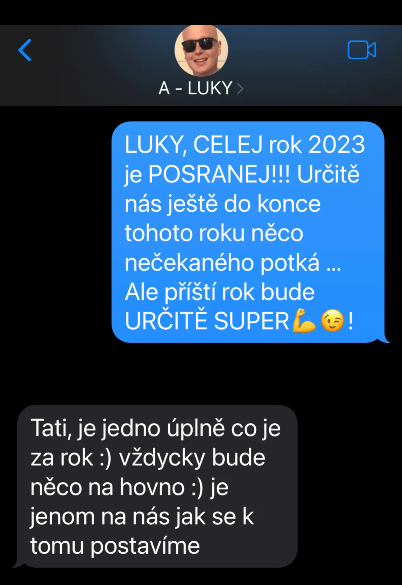Chtěl jsem Lukyho slovně povzbudit a tohle mně odepsal (viz foto z naší konverzace) ... Luky byl neskutečně moudrý člověk!