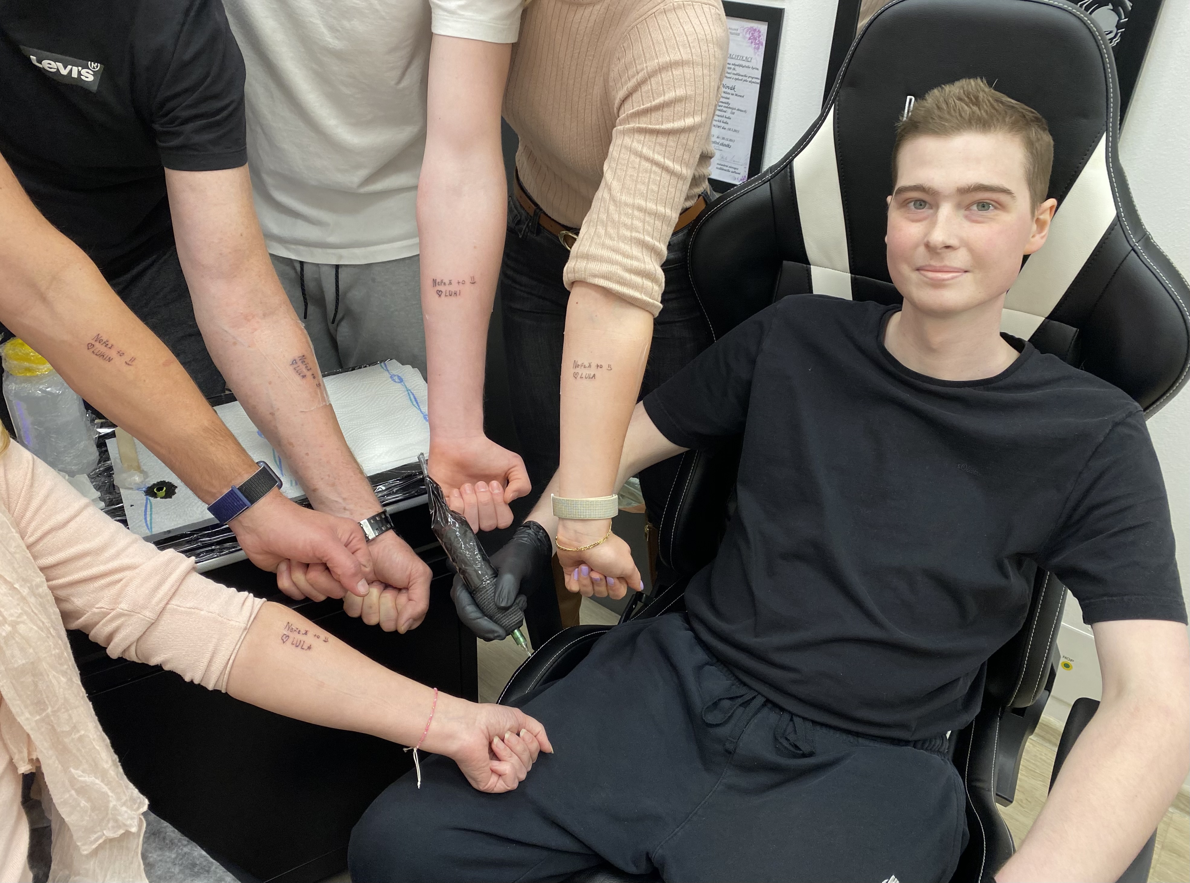 Luky chtěl své milované rodině zanechat něco na památku a dostal geniální nápad: celé své rodině vytetoval na ruku svůj vzkaz „Neřeš to!“. Až budete mít v životě nějaké velké problémy, vzpomeňte si na Lukyho a rázem budou vaše problémy poloviční 😉!