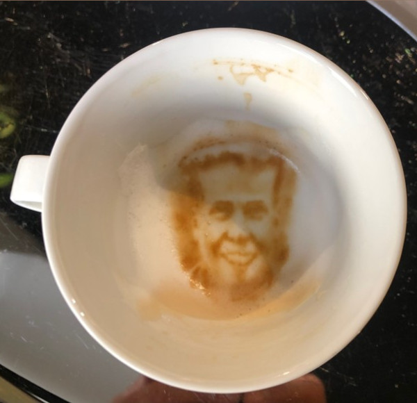 Objednal jsem si kávu s Lukyho portrétem. Normálně jsem popíjel kávu, kterou jsem si úmyslně nezamíchal. Po dopití kávy jsem s údivem zjistil, že je na dně šálku pořád Lukyho portrét …